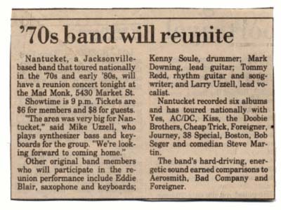 NANTUCKET - YOUR FACE OR MINE (1979, EPIC) Larry Uzzell - vocals, bass; Tommy Redd - guitars, vocals; Mark Downing - guitars, vocals; Mike Uzzell - keyboards, vocals; Eddie Blair - saxes, keyboards, vocals; Kenny Soule - drums, vocals